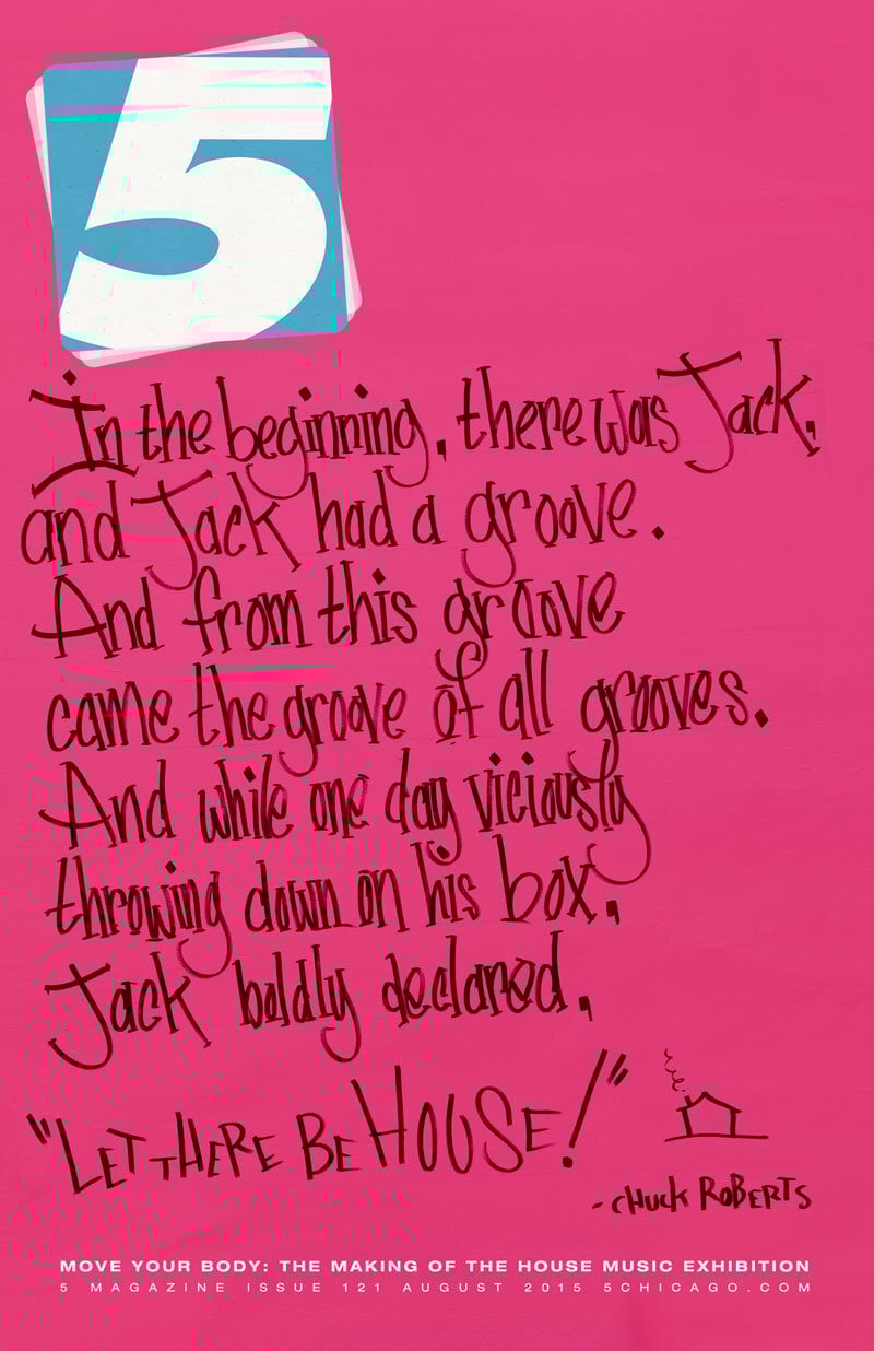 5 Magazine talks with David Chavez (quoted above) and Rob McKay, two of the people behind the city's celebrated and critically acclaimed House Music exhibit presented by the City of Chicago Department of Culture and Special Events, in issue #121 of 5 Magazine, released August 2015.